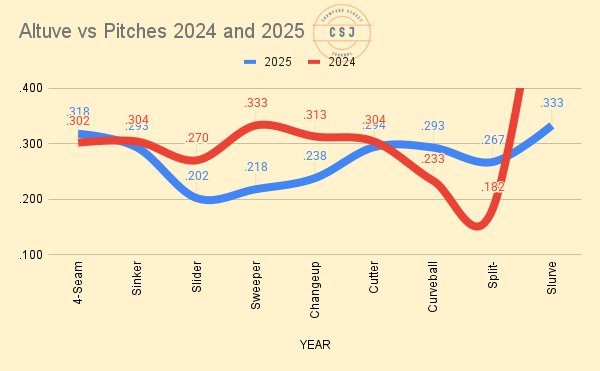 It’s easy to see what happened to Altuve in 2025 with a little digging, and I’m sure many of you are already aware: He didn’t hit breaking balls like he did in 2024 and certainly nowhere near what he did during his and the Astros’ heyday.