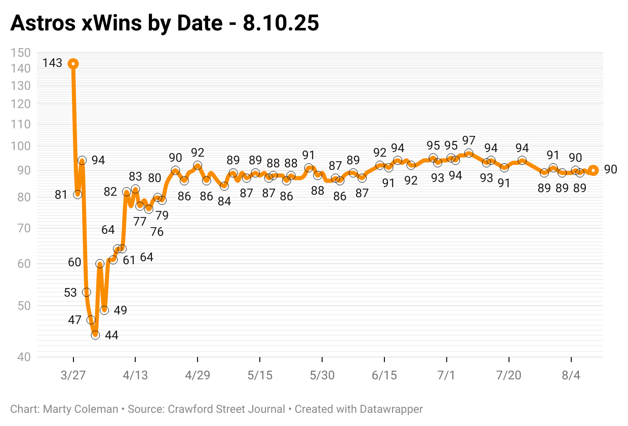 Those four wins were enough to get the Astros back to 90 expected wins, which is where they started the month.