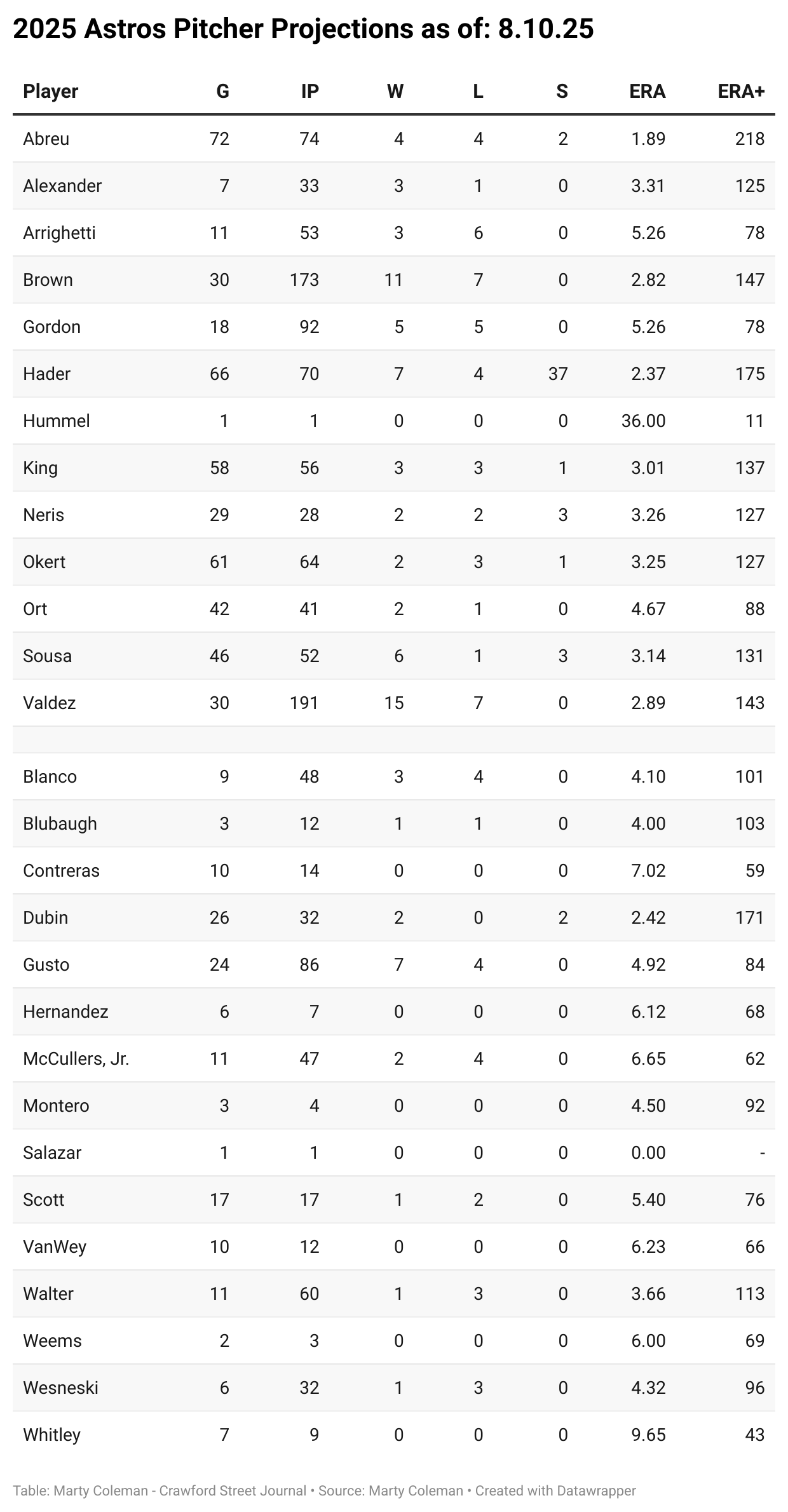 Bryan Abreu has been just as good against right-handed batters as lefties: RHBs are slashing .165/.271/.233 with a 46 OPS+ against Abreu, while lefties slash .161/.267/.264 with a 48 OPS+ against him. Abreu has held all batters (45) to a 21 OPS+ since the All-Star Break.