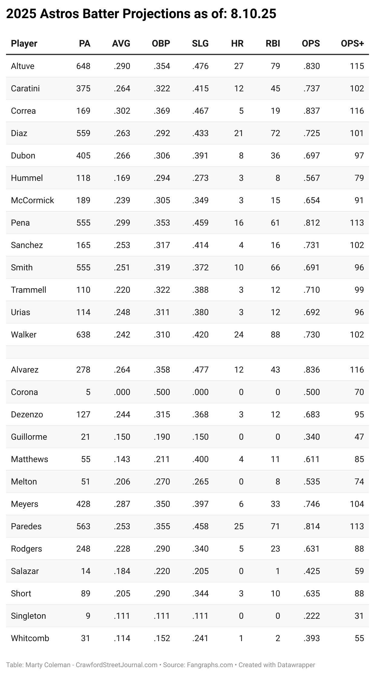 Altuve is on fire, now projecting to 27 homers, 79 RBI and a 115 OPS+.