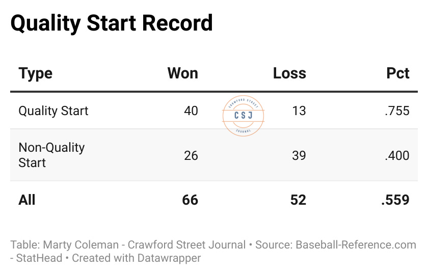 The Astros are a pitching and defense first team and as such they thrive when they get a quality start and struggle when they don’t.