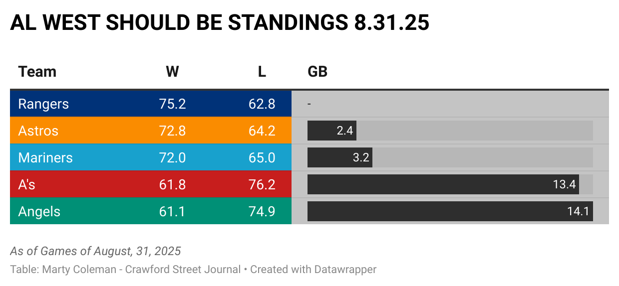 Last time around we explained why the Rangers are atop our “Should Be” standings and that gap has only widened as Houston has only touched home plate 3 times since that post.