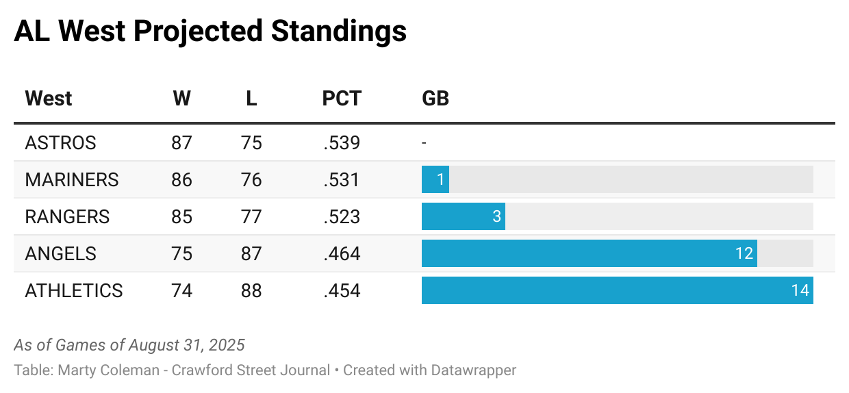 With 25 games to go Astros flounder as the Mariners and Rangers charge