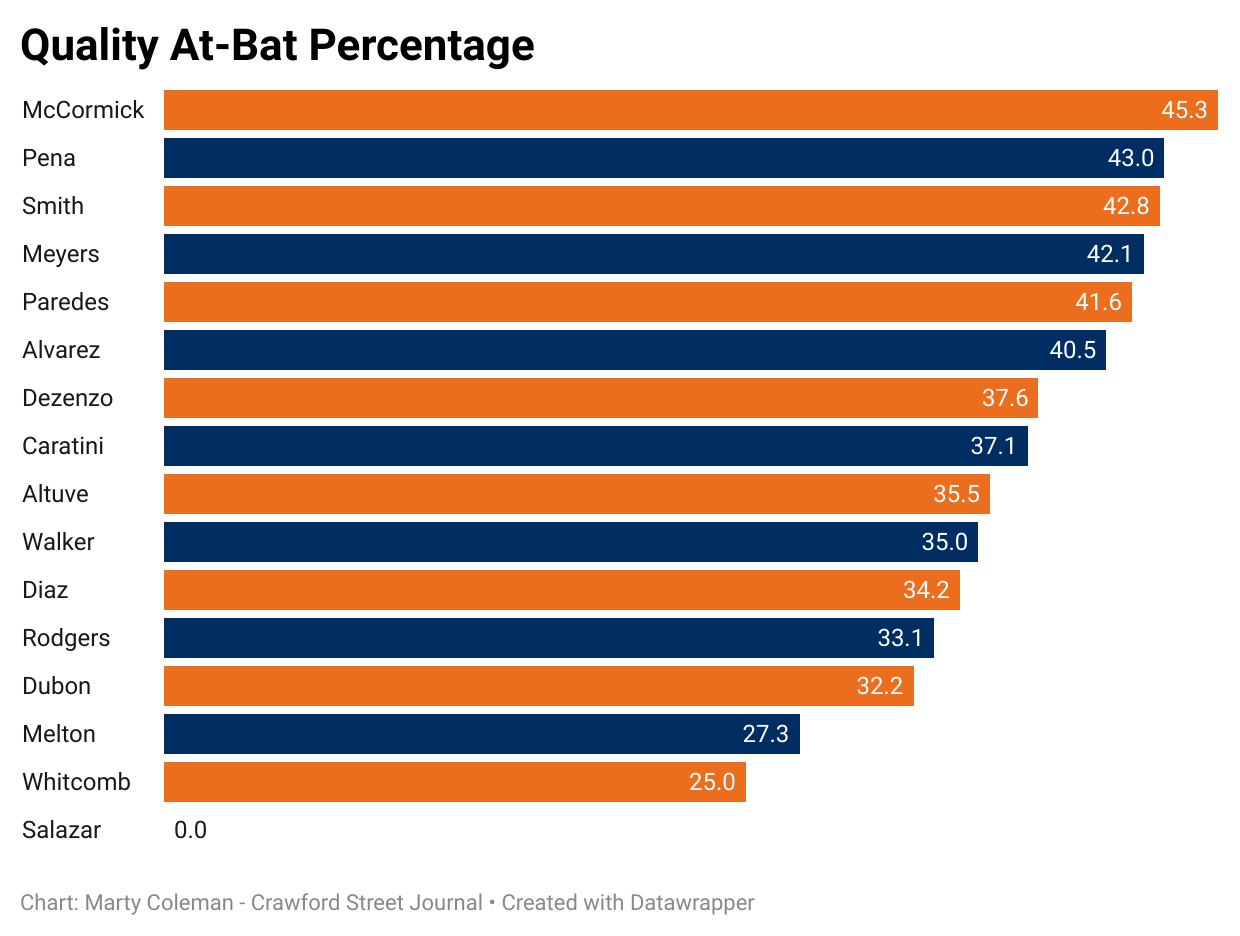 Seattle has been slightly more lucky at +0.45 wins, but the takeaway is the Astros aren’t winning on luck, but on the way they’re playing.
