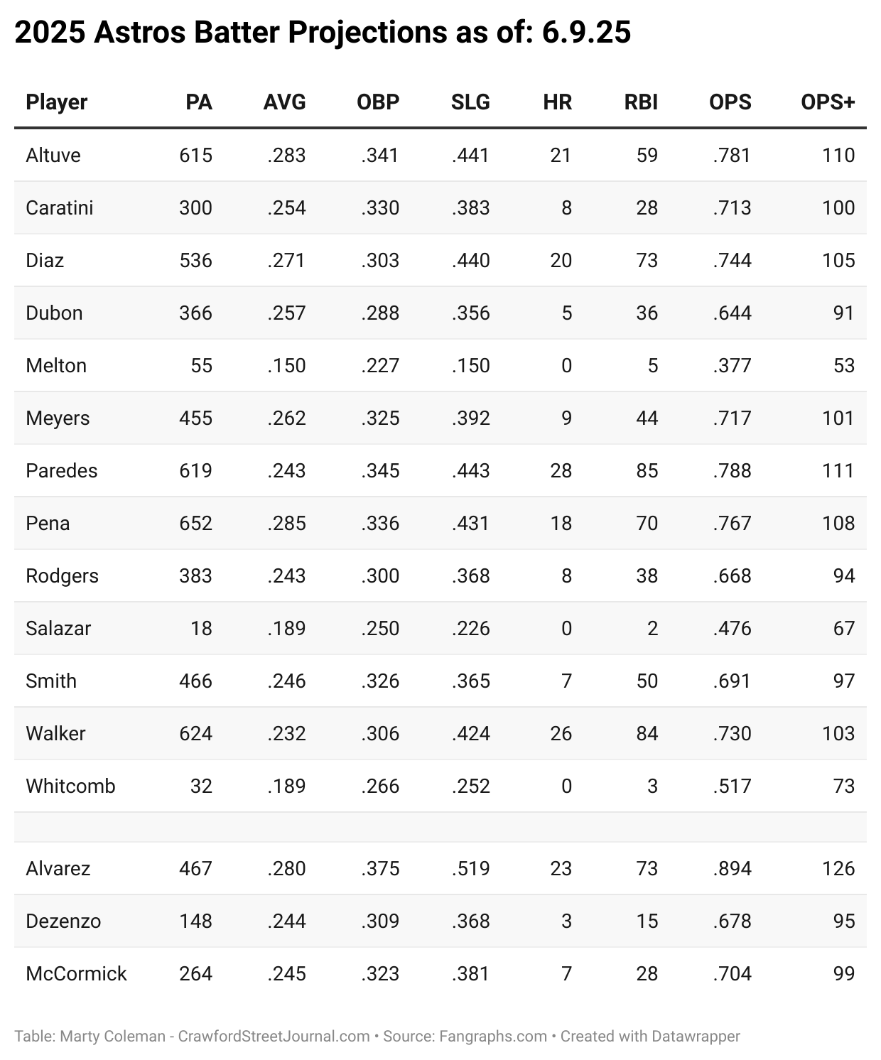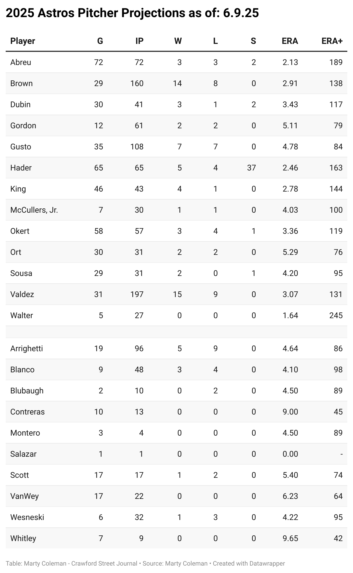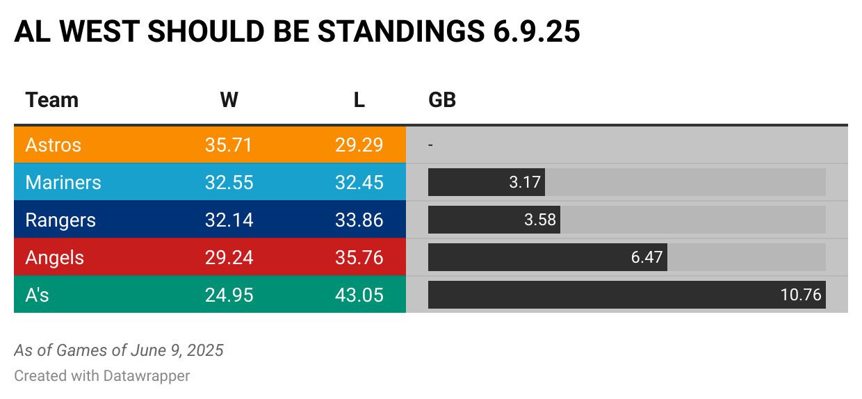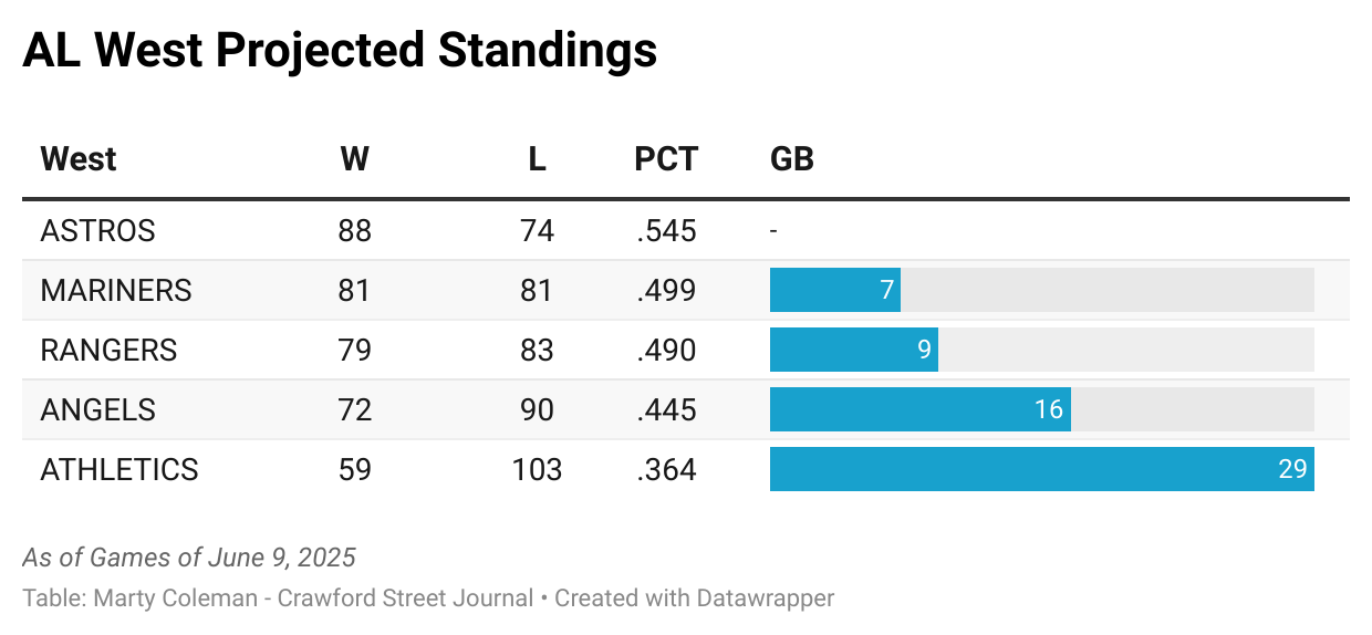 Houston has opened up a 7-game lead in the projected AL West Standings, which estimates the final standings if teams continue to play the way they’ve played to date.