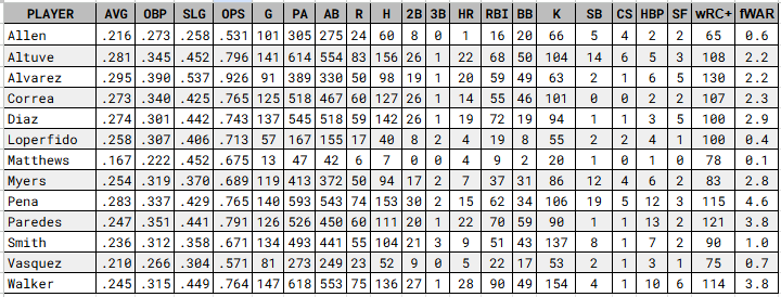 Projections for 2026 Astros Batters