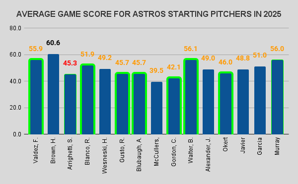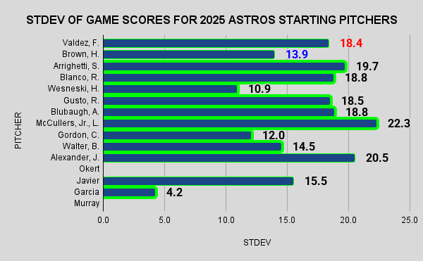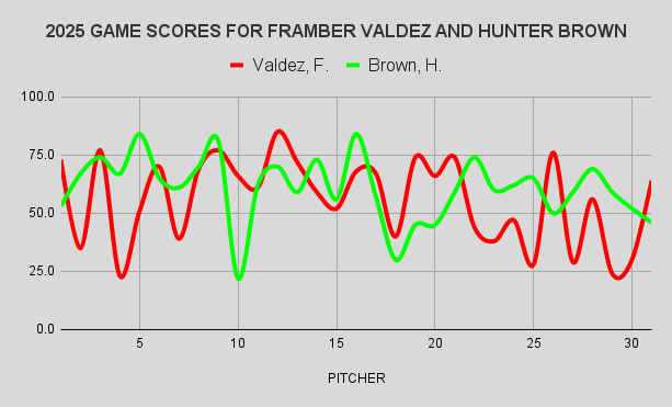 What stands out to me is how much better “on average”, Hunter Brown was to Framber Valdez, not only in overall average, but in game-to-game performance as we’ll see shortly.