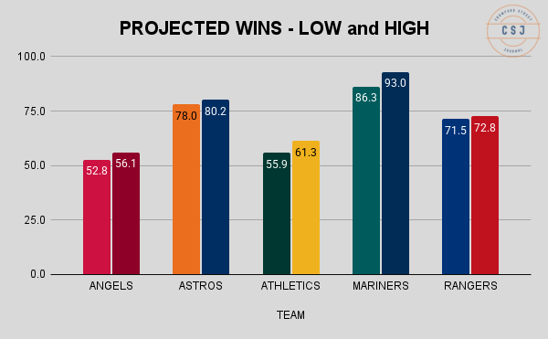 Looked at this way, the projected order is no shock: Mariners, Astros, Rangers, Athletics, Angels.