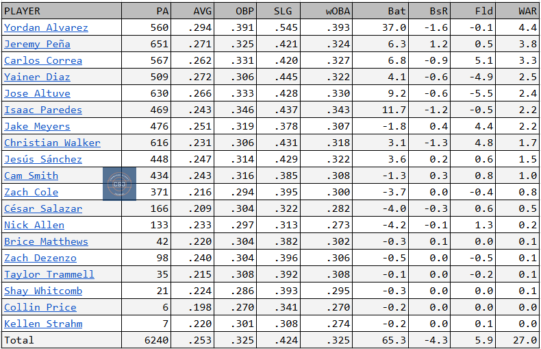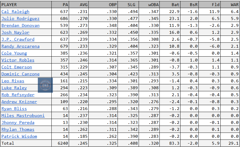 The entry of Donavan into the Mariners lineup also vaults the Mariners past the Astros in projected lineup fWAR.