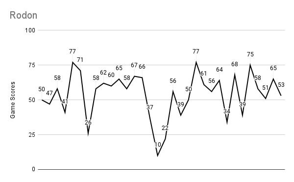 What a wild ride with Rodon. A high of 77 with a low of 10, which was the lowest for the entire group.