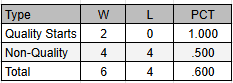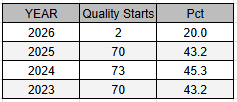 Two times through the rotation and Lance’s first start against the Red Sox is the high score at 75.