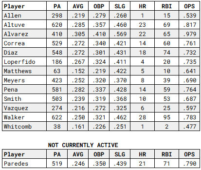 One of the more surprising turns of events early in the MLB season has to be the Astros bats.