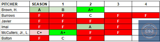 17 Starts: 2 A+, 1 A, 1 B, 2 C, and 11 F.