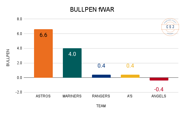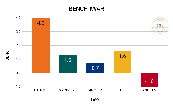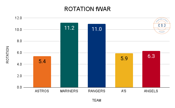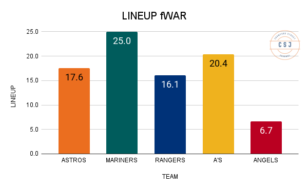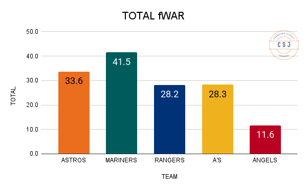 The Astros currently sit about 7.9 fWAR behind the Mariners, comfortably in second place in the West.