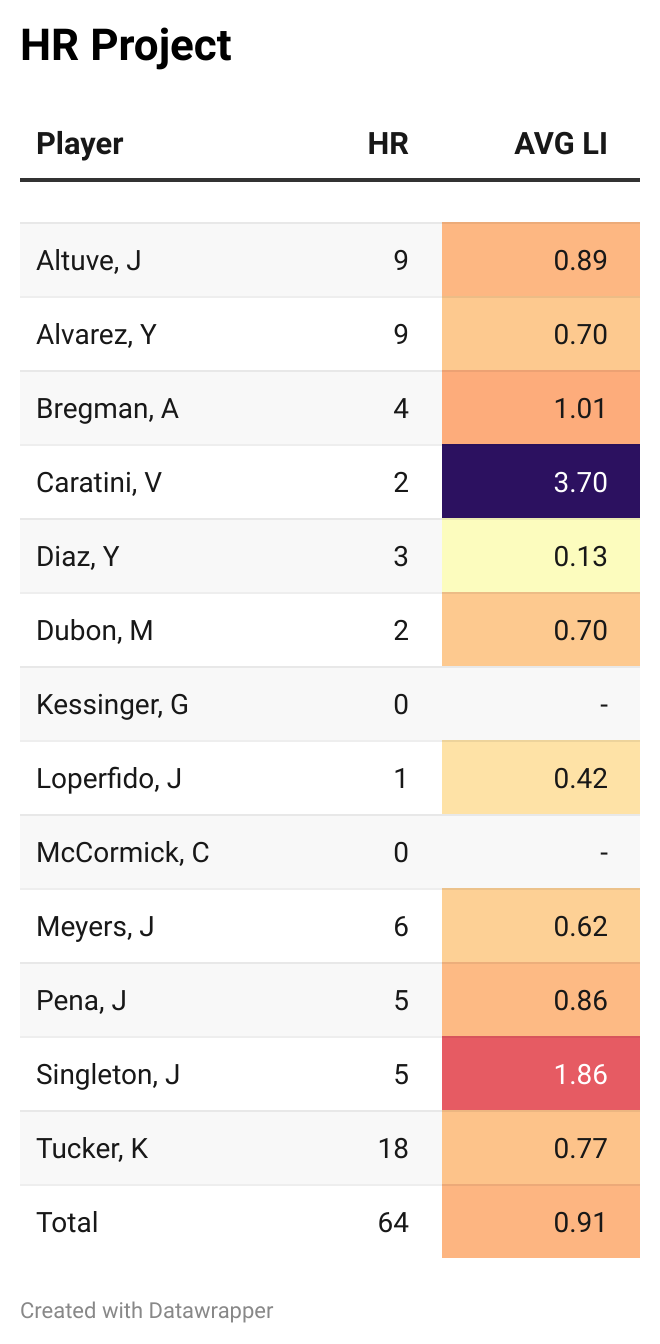 NOTE: OVERALL FAVOR column is changed to reflect Astros only. In other words, a +0.24 in favor of Yankees is reflected as -0.24 here.