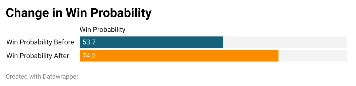 Astros win probability went from 53.7% to 74.2% (+20.4%).